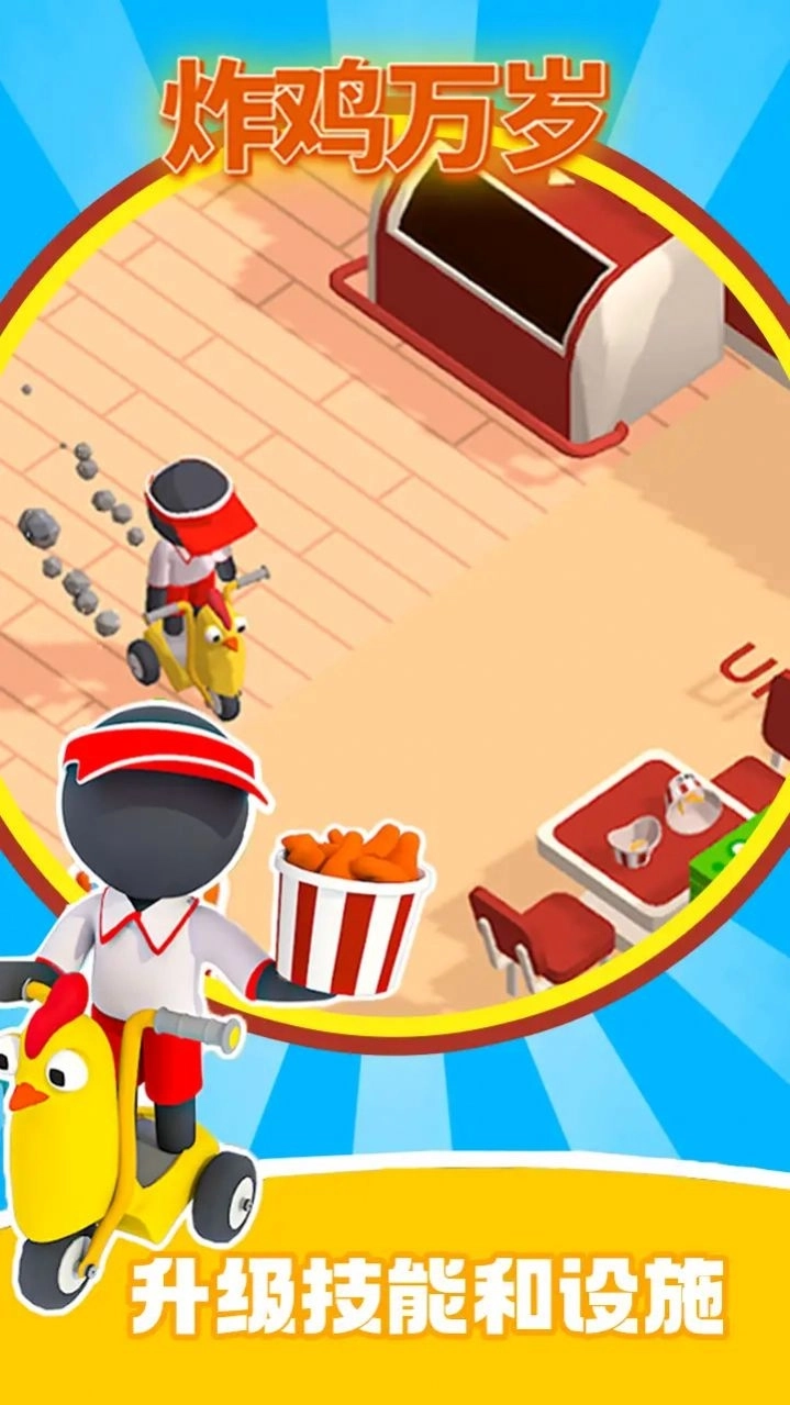 《炸鸡万岁》是一款以制作炸鸡为主题的休闲益智游戏。玩家在游戏里要持续制作不同口味的炸鸡,把自己的炸鸡店经营得蒸蒸日上。游戏要求玩家根据每位顾客的点单需求来制作炸鸡,以此获取更多收益,进而升级各类技能以及制作炸鸡的设施设备。