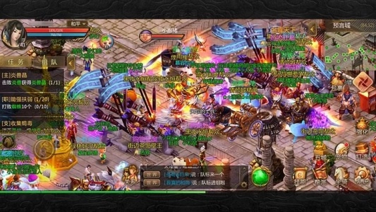 一起挑战BOSS,尽情战斗,一刀就能爆出顶级神装!千人同屏上演人怪混战,全屏大招齐放,血战到最后一刻。