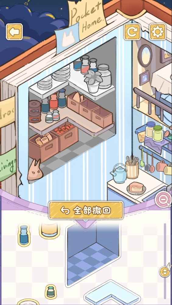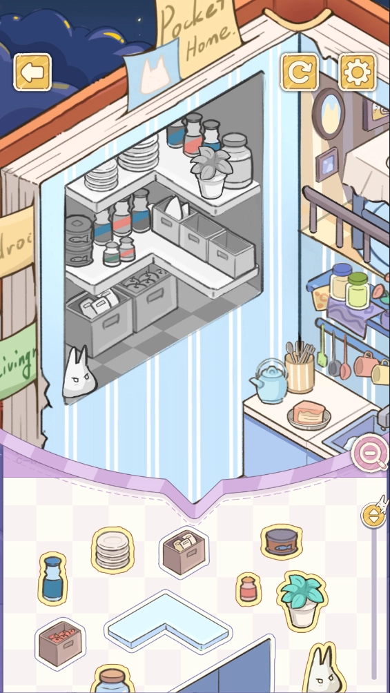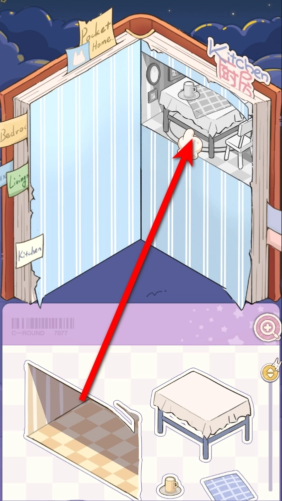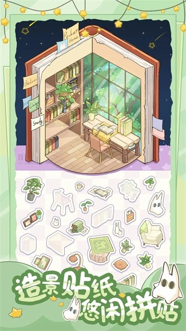 1.使用手绘风格的贴纸,动手搭建房间。