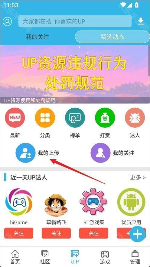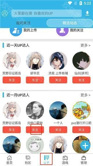 1、点击进入up板块,点击关注;