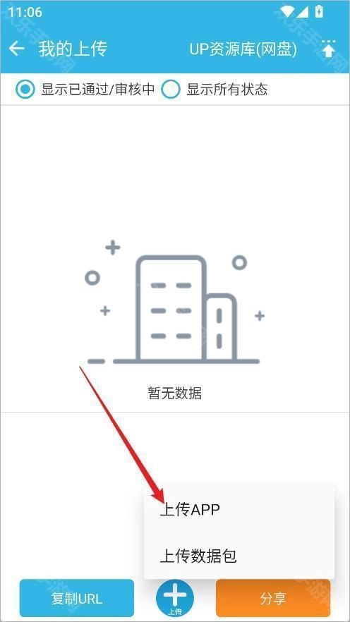 3、点击下方的【+】按钮,开始创建上传内容。