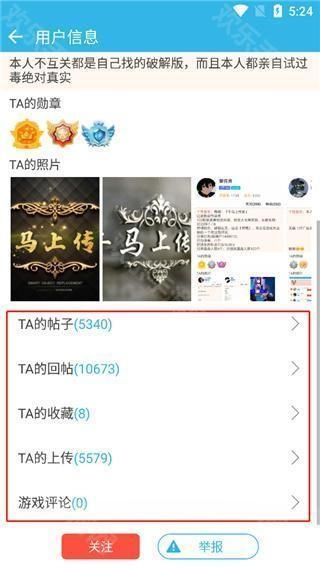 4、向下翻阅,我们可以查看他们的帖子、上传内容、回复、收藏等信息;