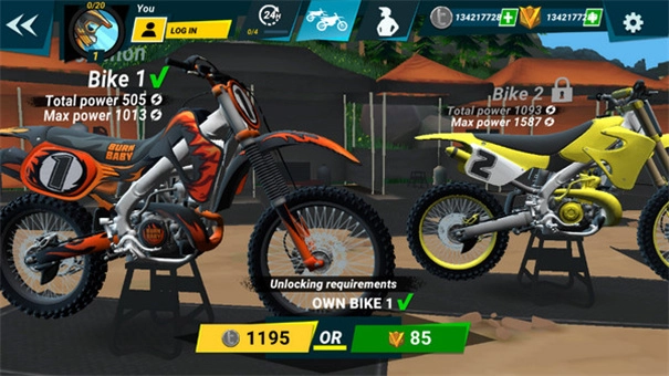 3、带领玩家在职业生涯与时间竞速这两个模式里,体验极速且疯狂的越野摩托车竞赛带来的刺激。
