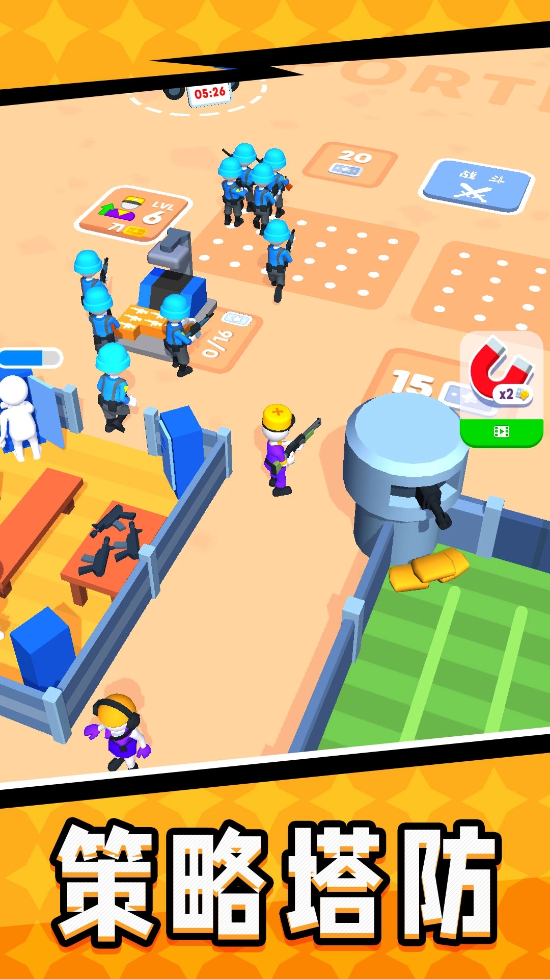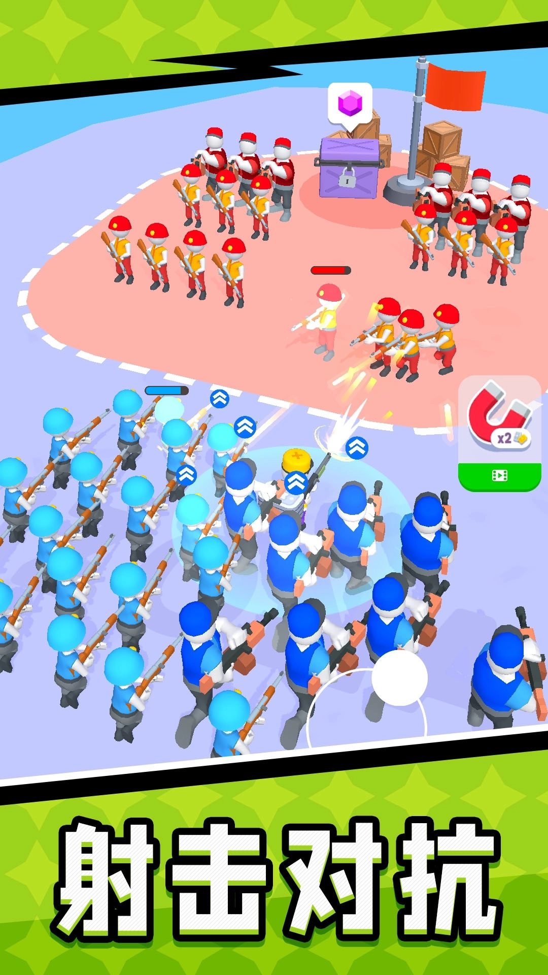 钢铁小人战争是一款休闲有趣的塔防对战类游戏,玩家能够灵活御敌,依据对手的差异,派出不同数量的小兵,精准锁定敌人并实时发起射击攻势。此外,游戏内还有丰富多样的武器与皮肤可供配备,助力玩家增强团队战斗力。