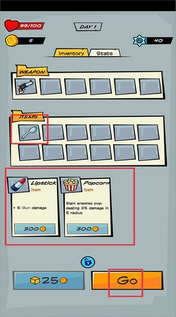 1.玩家可以使用基础金币购买合适的武器和道具。