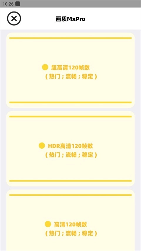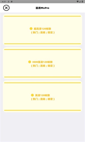 画质提供多档选择,包括超高清120帧、HDR高清120帧、高清120帧等,支持一键切换,可充分发挥设备性能。