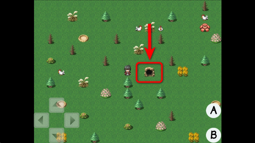 2.剧情结束后就能开始移动了,左下角的按键是用来控制移动的,右下角的则是交互键。