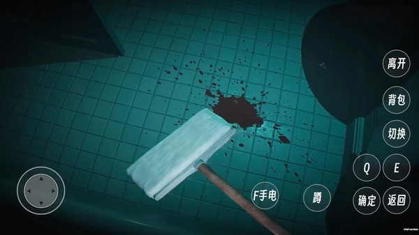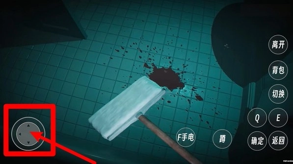 3.用拖把清洁时,要通过左侧的虚拟摇杆来控制移动方向,清理血迹的过程中,得留意观察周围环境有没有出现异常情况。