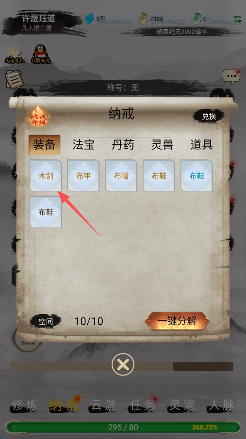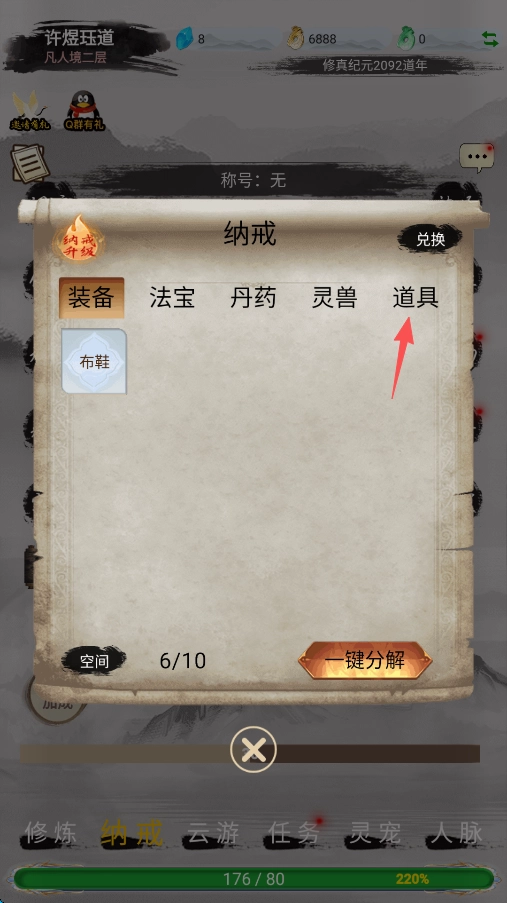 3、点击屏幕下方的“纳戒”,它就相当于普通游戏里的背包。