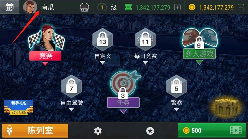 2、进入游戏后,点击【陈列室】购买你的第一辆摩托车。接着点击关卡,就能开启竞速之旅。