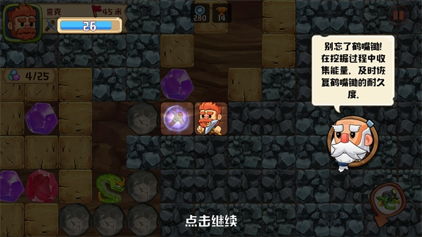 3、挖掘时可以收集能量,务必注意不要让鹤嘴锄损耗至坏掉,否则就无法再移动了。