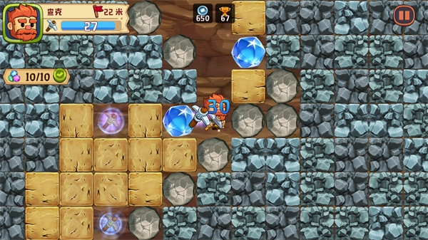 《挖下去》是一款休闲动作探索类游戏。游戏采用卡通漫画风格,角色形象Q萌可爱,为玩家带来轻松有趣的游玩体验。在游戏中,玩家将化身为一名矿工,深入地下挖掘,探寻宝石与深埋地底的宝藏,同时消灭途中的拦路怪物,最终将宝藏带回地面。游戏玩法简单易懂,操作无需复杂技巧,但需注意镐子的耐久度——玩家需要合理规划使用,一旦镐子损坏,就必须返回地面进行修理。
