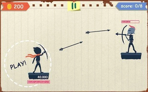 坚持到底(sticknow)是一款火柴人题材的射箭对战游戏。游戏的核心玩法是双方用弓箭互射,在你来我往的较量中,把对方的身体插满箭矢,直到其中一方血量耗尽倒下,整个过程魔性又搞笑。值得注意的是,箭矢在空中飞行时会呈现出一定的弧度,这就要求玩家精准预判落点,才能准确命中敌人。如果能射中头部还会触发暴击效果哦。感兴趣的话就来试试吧。