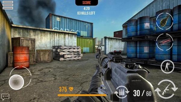 《FPS第一战场》是一款枪战射击游戏,拥有超高清的纹理材质与逼真的场景设计,能为玩家带来强烈的沉浸代入感。为了高度还原真实战场体验,游戏中配备了各类尖端现代化武器,且多数武器在其他FPS游戏中较为常见,因此上手门槛低,玩家可以快速熟悉并投身战斗。
