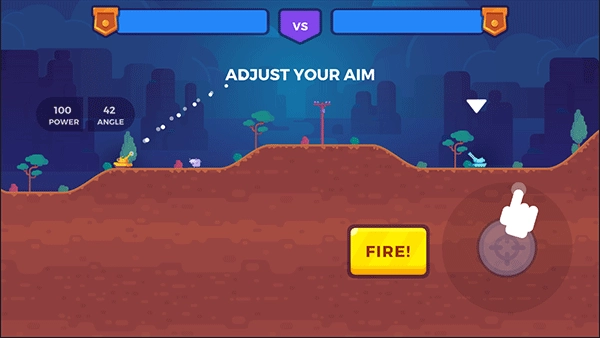 1、采用漫画式美术风格,设计了超多包含不同地形的关卡,玩家需要寻找最佳战斗位置,发射炮弹进行射击。