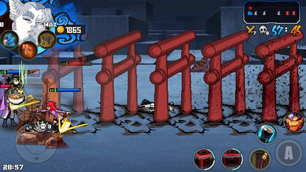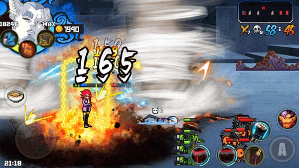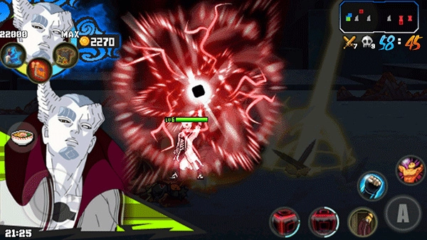 4、英雄的两个奥义技能会在当局战斗内的2级和4级时分别解锁。释放奥义技能需要通过承受伤害来积累查克拉(也就是俗称的怒气值)。此外,战斗界面里还有回血技能,该技能无需消耗蓝量,但会消耗当局战斗内获得的金币。