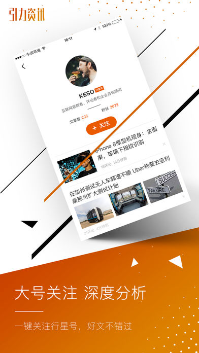 1、引力资讯是一款聚焦各领域原创内容的个性化资讯阅读产品。
