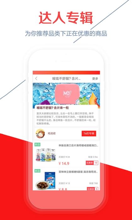 4、达人专辑:为你推荐该品类下正在进行优惠活动的商品。
