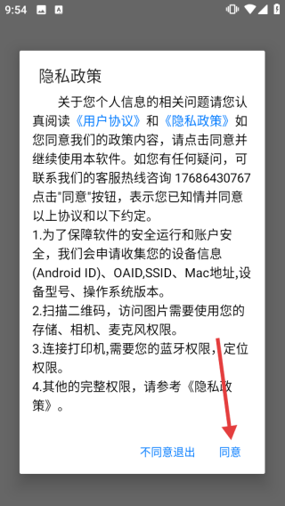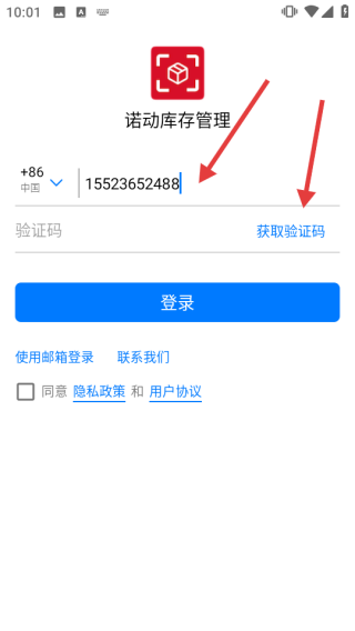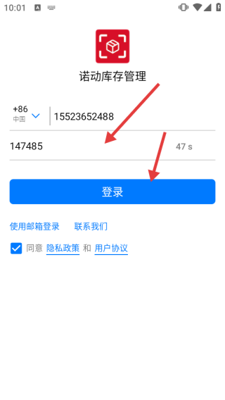 1. 开启诺动库存管理APP,于隐私政策弹窗处点击【同意】。
