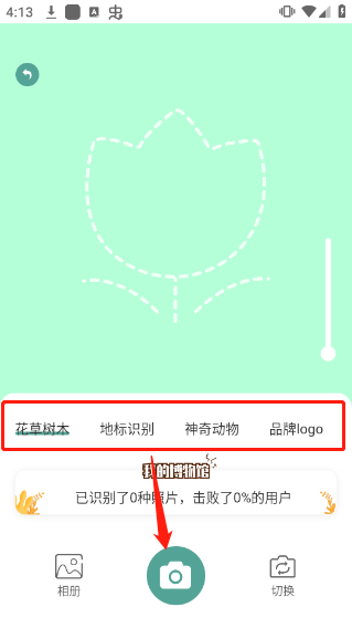 扫一扫功能主要借助不同引擎来识别具体花朵。在下图所示位置,我们能够切换诸如“花草树木”“地标”“动物”等各类引擎。