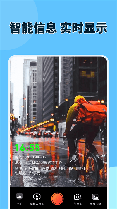4、该软件具备智能信息处理能力,能够实时显示信息,并快速制作出水印相片。