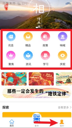 2. 首页界面整合了资讯、政策、学习、庆祝等多个服务模块,便于用户知悉最新的地铁信息与城市动态。