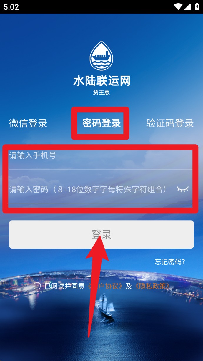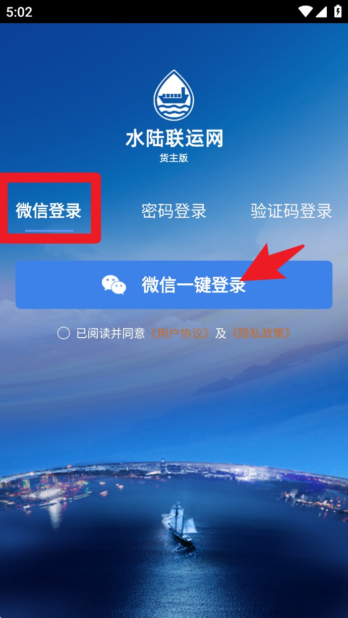 1. 开启软件,进入登录页面。你既可以点击「微信一键登录」进行快速授权,也能够选择密码登录或者验证码登录的方式。在登录之前,务必勾选用户协议以及隐私政策。