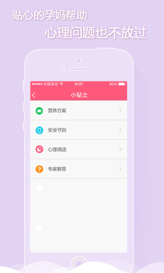 2、专为孕妈悉心准备的小贴士,涵盖孕期营养、安全以及心理健康等领域的专业信息。这些知识点分类清晰,更新迅速,能为众多宝妈答疑解惑。每日孕育知识由全国知名专家联合审定,为你提供最权威的保障。