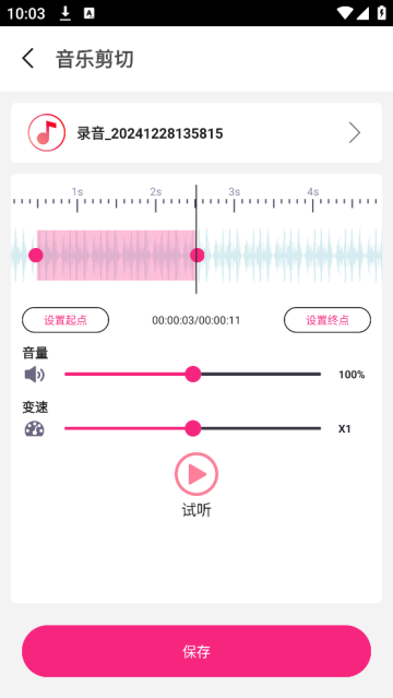3、音频剪辑:能精准裁剪各类音频,帮你提取出最心仪的那段旋律,打造专属音乐。