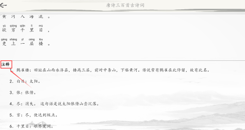 2、名句解析功能会给出详尽的注解,助力用户领会诗歌的深层隐含意义以及情感表达,提升对古诗的鉴赏能力。