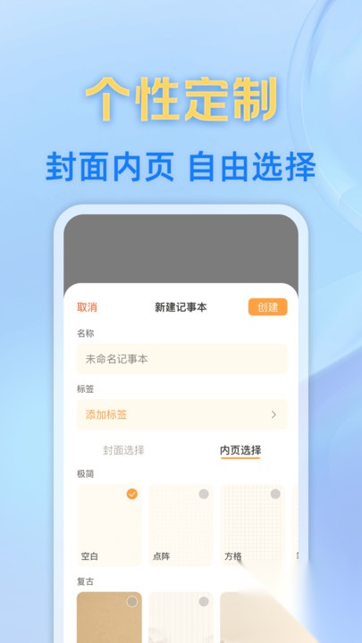 3、具备自定义分类管理笔记内容的功能,方便进行高效整理与快速检索,同时还提供多种背景模板以及内页背景切换功能。