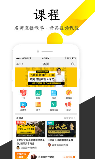 全新推出“偷师”功能,九大美院的名师将以1对1直播的形式,为你答疑解惑。