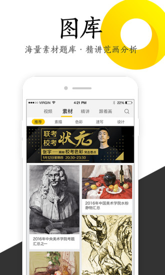 身为美术生专属的在线画室,各类美术学习素材一应俱全,超详细步骤图,快来跟着我一起画,尽情享受绘画乐趣!