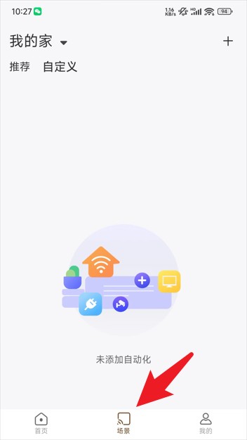 4、进入“场景”页签,在此页面可创建智能场景,完成设备联动与自动化操作的设置。