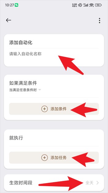 5、于自动化设置页面里,输入名称、增添条件以及任务,就能设定出高效的运行逻辑。