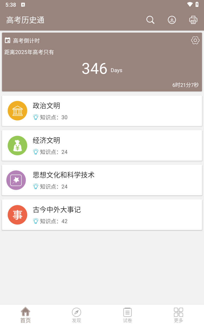 1. 下载软件并打开,在软件首页能够查看高考倒计时。