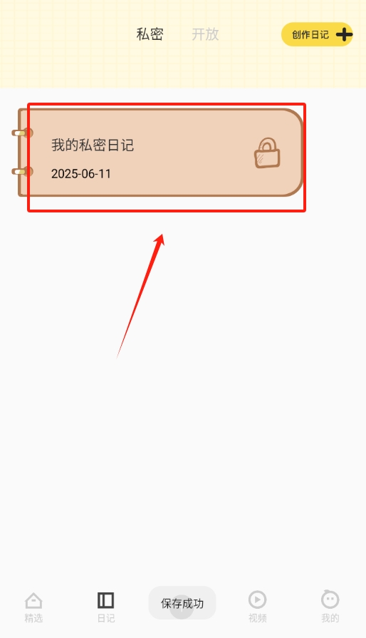 3、完成操作后,回到日记页面,此时就能看到刚刚完成并保存好的私密日记,方便后续随时查看。