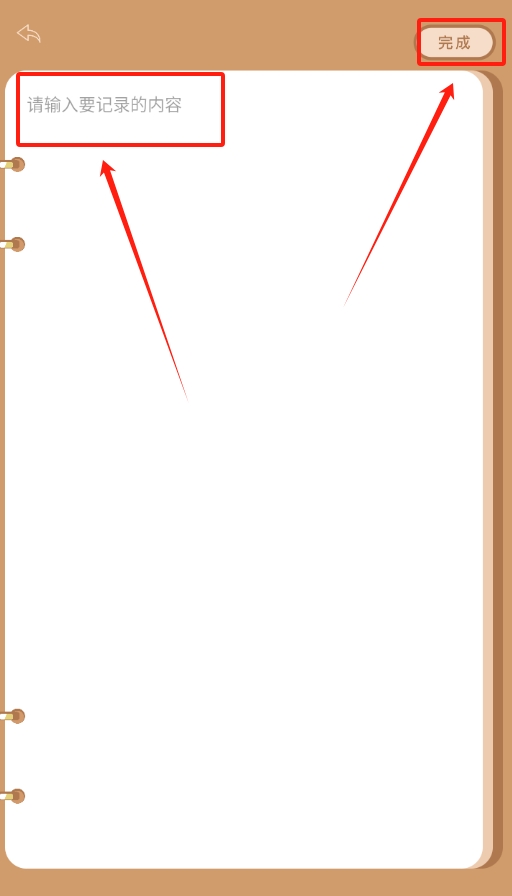2、于弹出的编辑界面里,录入你想要记录的生活琐事、心情感悟等相关内容,录入完毕后点击“完成” 。