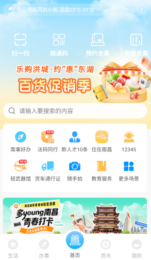 3、功能使用方式:打开软件进入主界面后,依据个人实际需求,点击“出行”“惠企”等功能板块,进而使用相应服务。