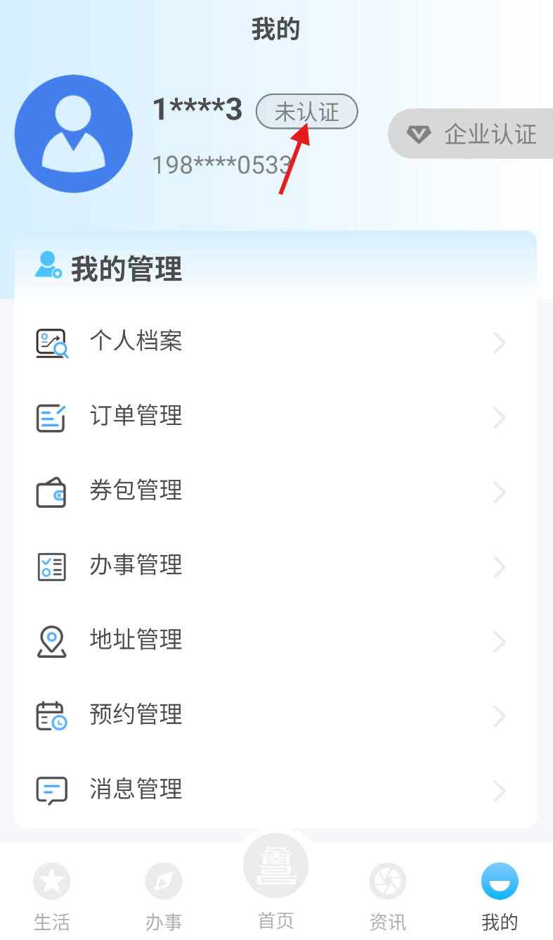 2. 当您进入“我的”个人页面后,在页面上寻找显示“未认证”的标识所在区域,随后点击该区域,即可进入认证流程入口。