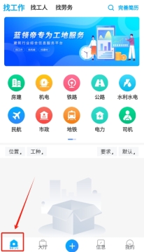 3、成功登录并进入软件主界面后,即可根据自身需求查找合适的工作岗位,或者寻觅所需的建筑工人。