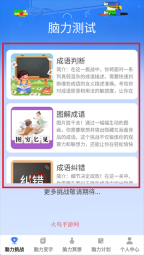 1. 来到【脑力测试】界面,挑选【成语判断】【图围成话】等玩法,投身脑力挑战之中。