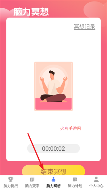 4、来到【脑力冥想】页面,轻点【开始冥想】按钮,开启冥想放松。