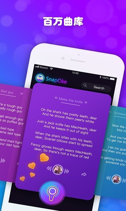 您能够自主挑选或搜索心仪想唱的歌曲,我们备有更为全面且数量更多的流行曲目,精心剪出精彩的副歌片段,还搭配了歌词与和弦。您无需像其他 KTV 应用那样,非得演唱完整首歌曲。