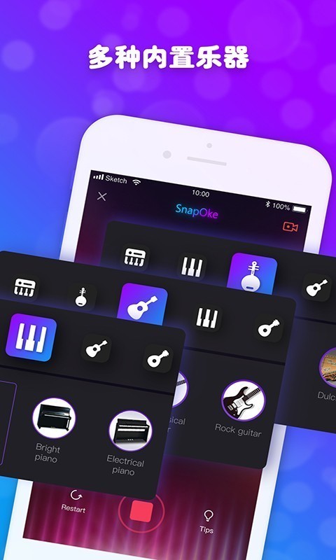 一款融合了钢琴、吉他、架子鼓等多种乐器伴奏功能的音乐弹唱软件
