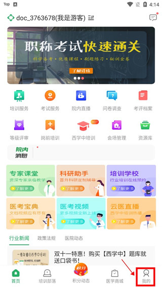 1. 开启医培宝典App,点击下方菜单栏中的“我的”选项。