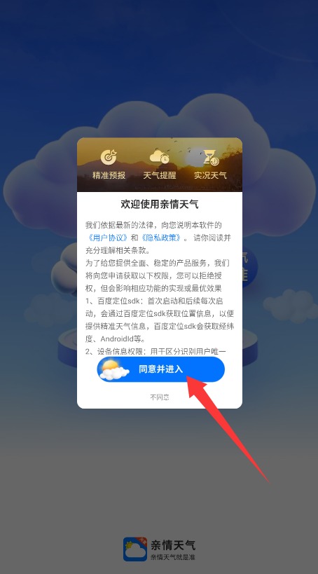 3、开启定位权限以获取实时位置信息,系统届时会自动推送当地精确的天气预报以及生活指数建议。