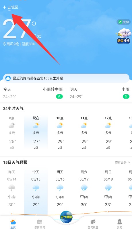 2、天气预报功能可提供未来15天的趋势预测。同时,逐小时精准预报支持通过滑动操作,查看任意时段的天气详细情况。