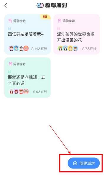 2. 进入【群聊派对】页面,在右下角就能看到【创建派对】按钮。