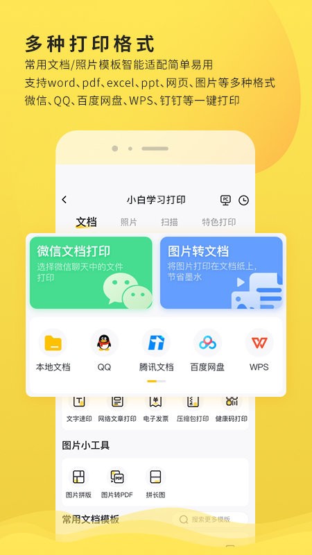 2、支持 WORD、PPT、EXCEL、PDF、pictures 等多种文件格式,能够直接打印。